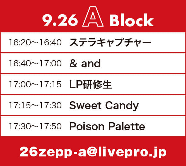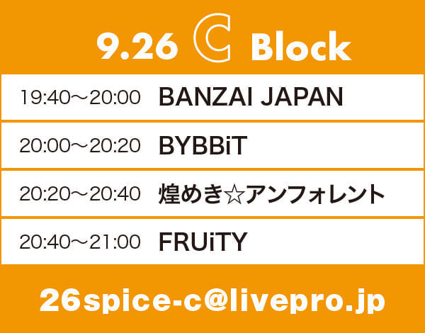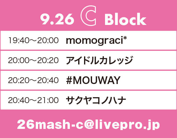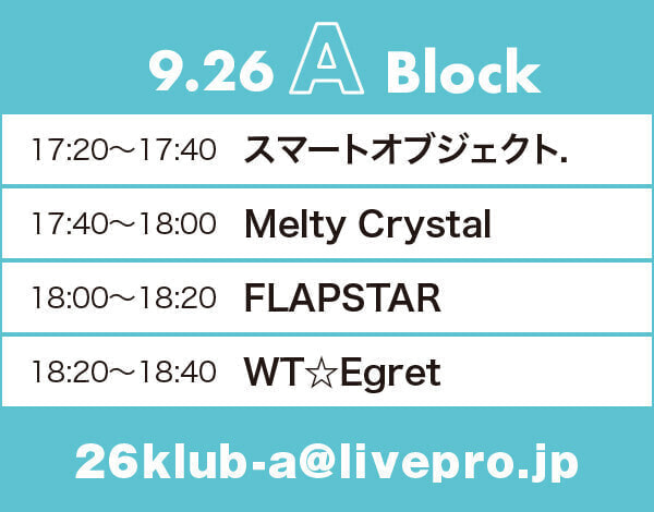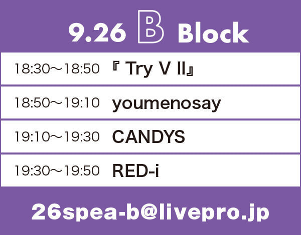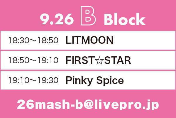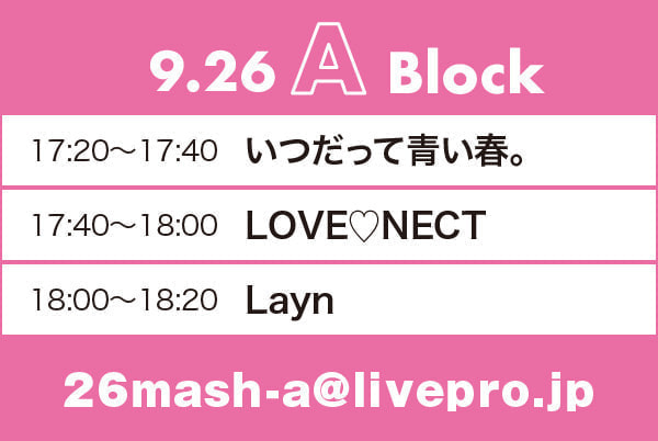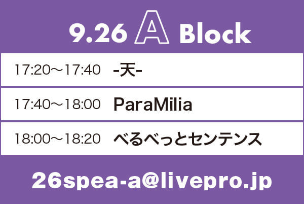 専用アドレス(a26●●le@livepro.jp)このようなブロックごとの申し込み専用アドレスが、3日間合計106ブロックございます。