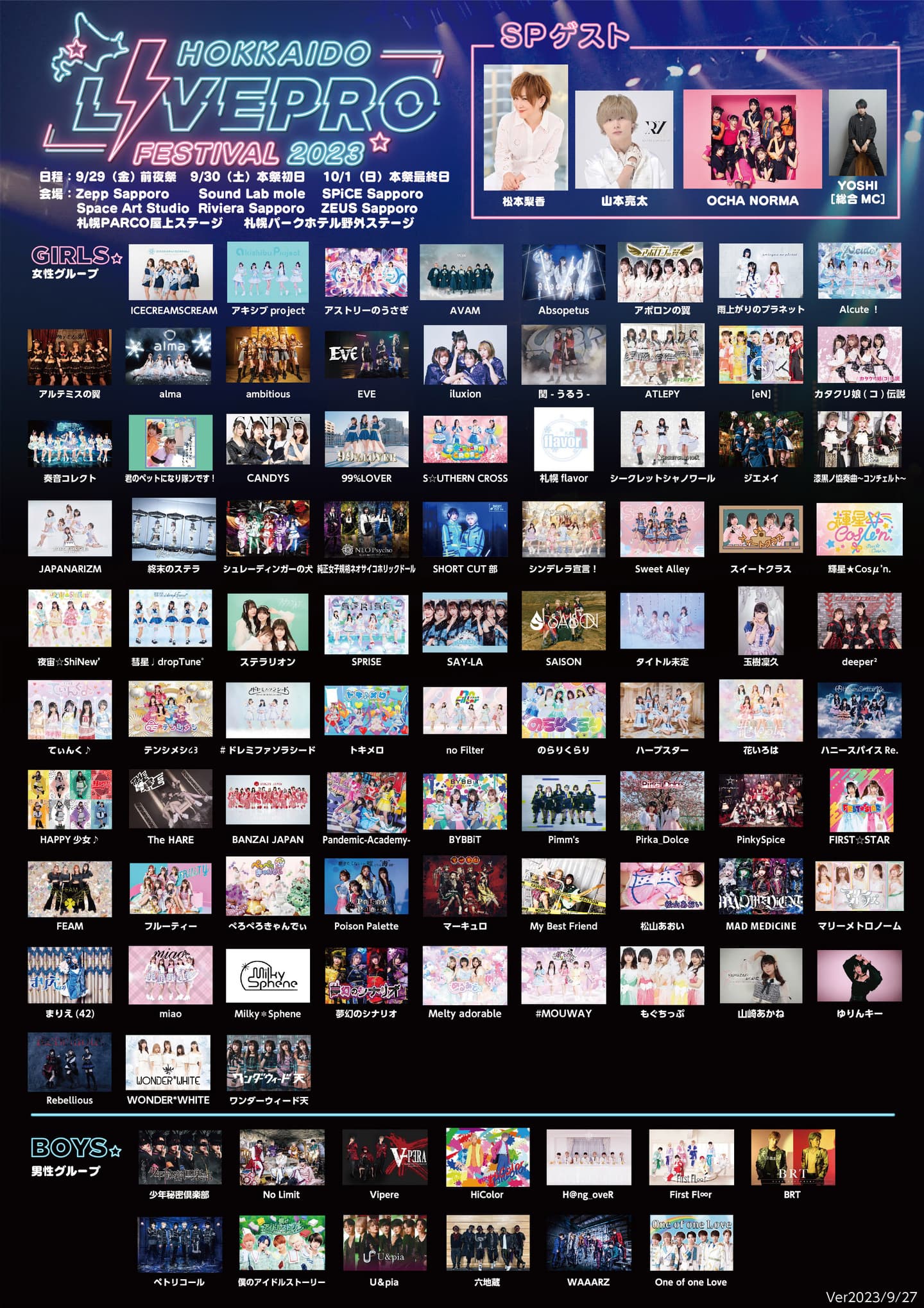 ICECREAMSCREAM、アポロンの翼、雨上がりのプラネット、AVAM、alma、ambitious、アルテミスの翼、EVE、ATLEPY、【eN】、Alcute!、奏音コレクト、君のペットになり隊ンです!、99%LOVER、輝星★Cosμ’n.、S☆UTHERN CROSS、漆黒ノ協奏曲〜コンチェルト〜、シークレットシャノワール、シュレーディンガーの犬、SHORT CUT部、シンデレラ宣言!、ジエメイ、JAPANARIZM、終末のステラ、彗星♩dropTune°、スイートクラス、Sweet Alley、夜宙☆ShiNew’、SPRISE、SAISON、、タイトル未定、玉樹凜久 、てぃんく♪deeper²、テンシメシ໒꒱、トキメロ、#ドレミファソラシード、日曜日の起死回生、no Filter、のらりくらり、花いろは、ハニースパイスRe.、HAPPY少女♪、ハープスター、BANZAI JAPAN、BYBBiT、PinkySpice、Pimm's、Pirka_Dolce、FEAM、フルーティー、ぺろぺろきゃんでぃ、Poison Palette、My Best Friend、マーキュロ、松山あおい、miao、Milky*Sphene、MAD MEDiCiNE、夢幻のシナリオ、もぐちっぷ、Rebellious、ワンダーウィード天、他